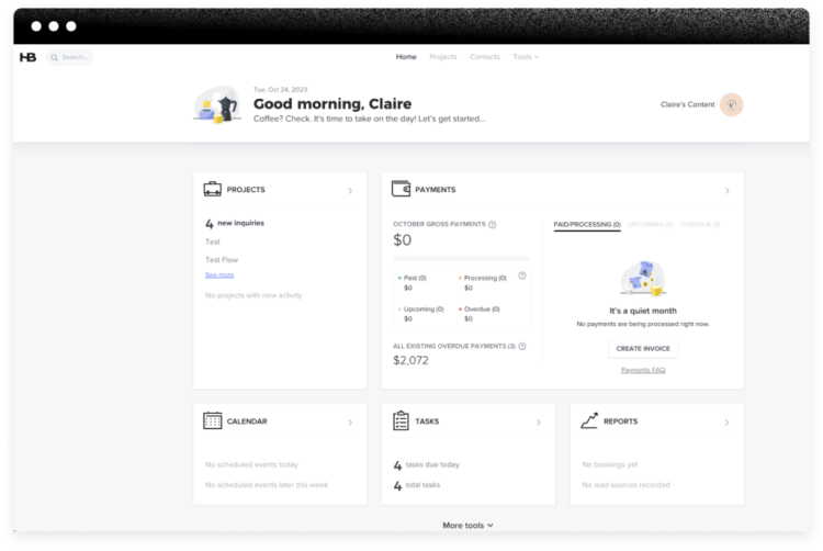 Dubsado — легкий “client management” з фокусом на процес: заявки, бриф-форми, шаблони листів, етапи, документи й рахунки. Він добре підходить сервісам, де багато комунікації та узгоджень.