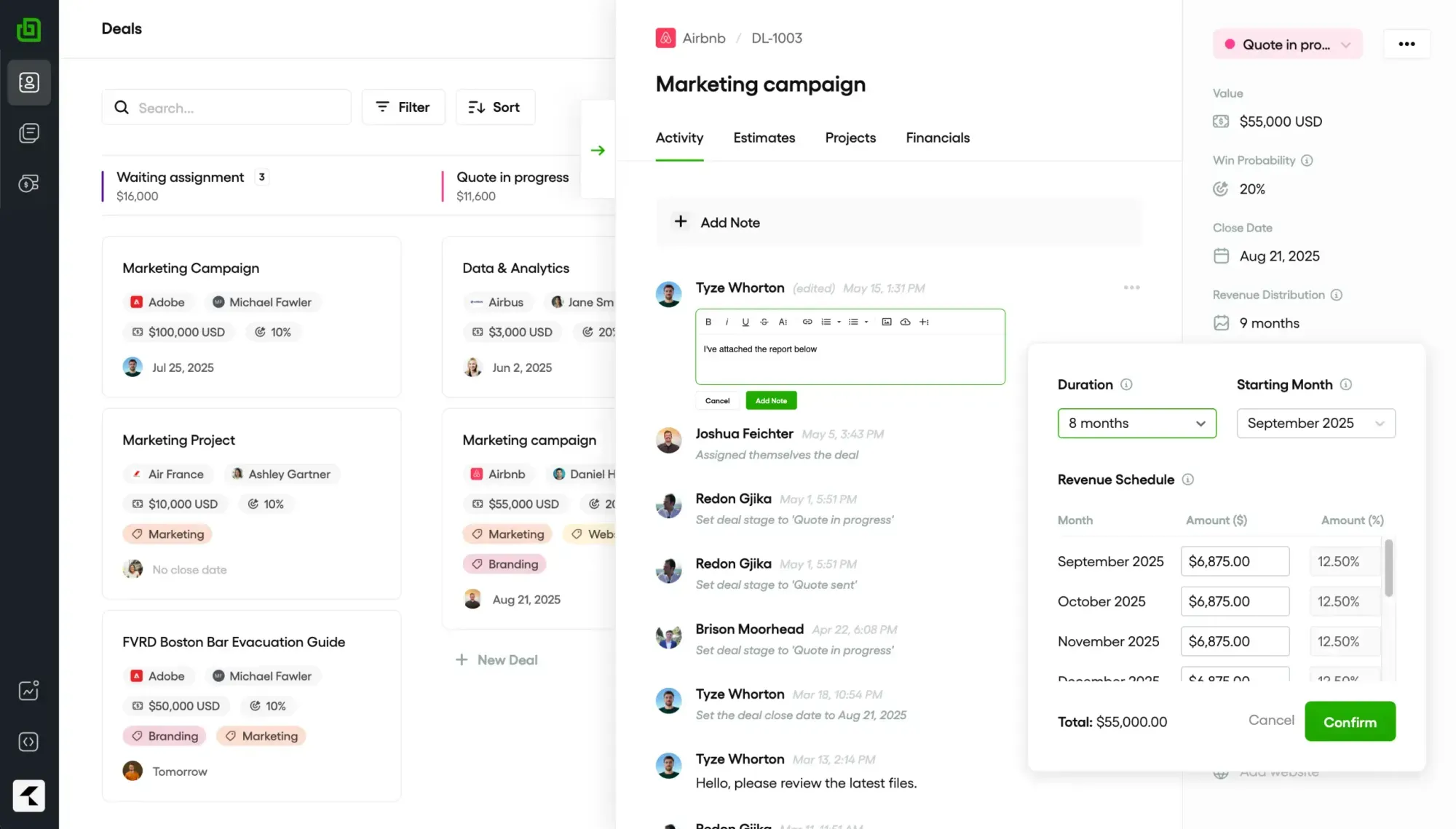 Pipedrive — один з найзручніших “легких” CRM саме для воронки: угоди, етапи, задачі й прогноз. Для сервісного бізнесу хороший, коли продажі — це повторювані угоди і важлива видимість статусів.